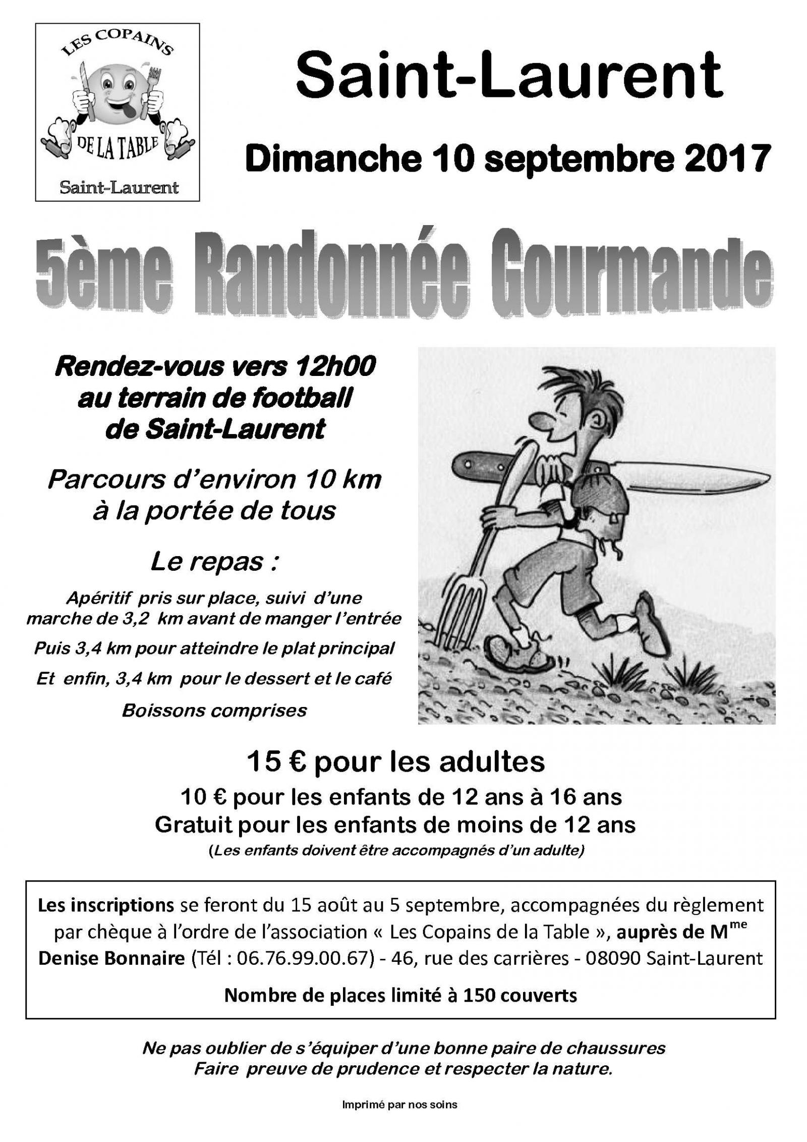 Les copains de la table vous invite à leur 5ième randonnée gourmande qui aura lieu le 10 septembre 2017.